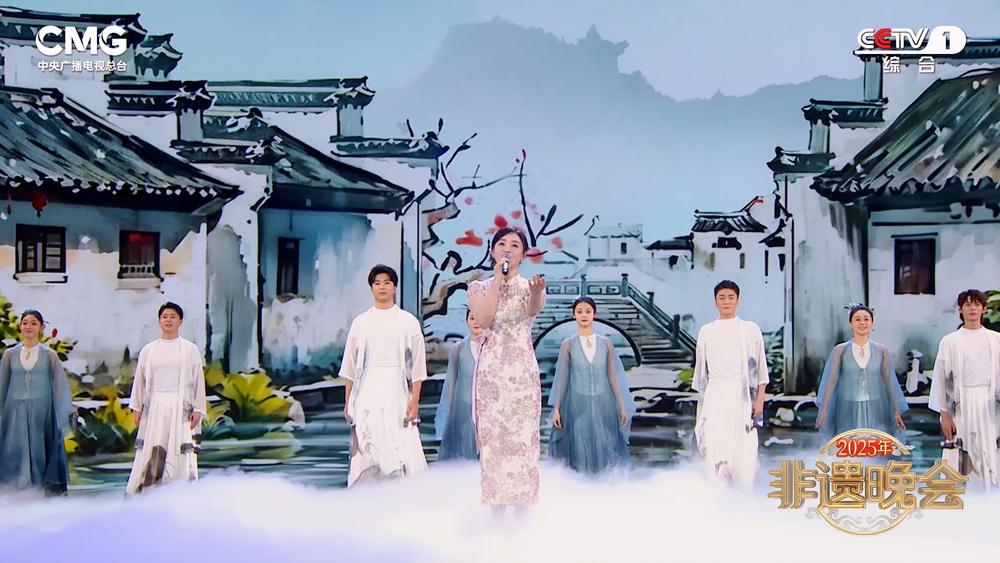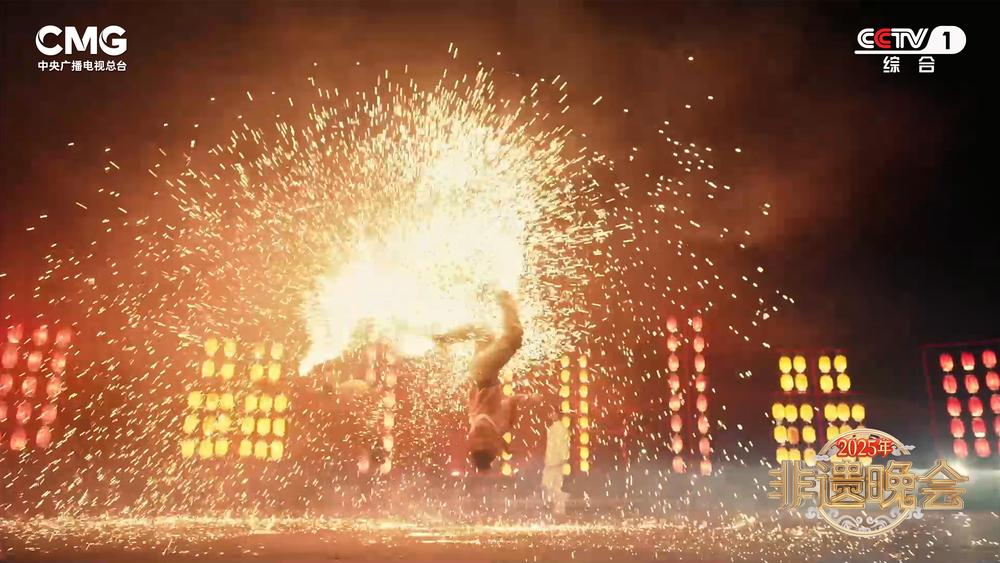 南腔北调,欢聚一堂。古拙的冀中笙管乐,吹出新时代的《星斗大海》;珍宝京剧,演绎出京味十足的《回马枪》;秦腔花脸,一喉咙吼出老秦的精气神;从浙江的“画中游”来到七彩云南,傣族、彝族等各族公民一同跳起新春之舞;天寒地冻中的扇子舞,吉林《瑞雪迎春》展现出冰雪特征与长白山风情;山西的神威锣鼓等非遗技艺让人“目不暇接”,“打”出了冒着热气的三晋年味;江西景德镇瓷乐器演奏,在AR技能加持下展现极致的瓷艺美学;攸县打铁水、七江炭花舞,湖南的年味更是热辣滚烫……还有重庆的川江号子、福建泉州提线木偶戏、湖北武当功夫、内蒙古呼麦、天津快板、辽宁东北二人转等非遗技艺的特别出现,精彩绝伦,亮点十足。